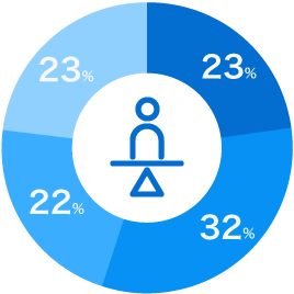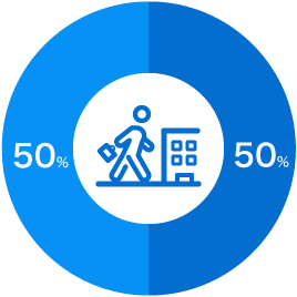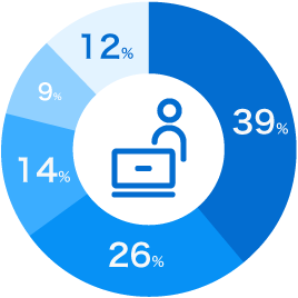 新卒入社からキャリアを積んでいる社員、中途入社でさらなるステップアップを目指して活躍している社員など、さまざまな背景を持つメンバーが在籍しています。全体として、新卒・中途の比率はおおよそ半々となっています。